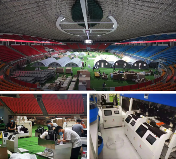 在主战场广州,金年会jinnianhui生物工程师们全力以赴参与到广州市政府统一协调各单位搭建的气膜方舱实验室工作中。6月1日,广东首个气膜方舱实验室在广州体育馆正式投入使用;6月2日晚,4个气膜方舱实验室全面投入使用,核酸检测日产能达到12万管,可实现全天候收样检测,提高核酸检测效率。