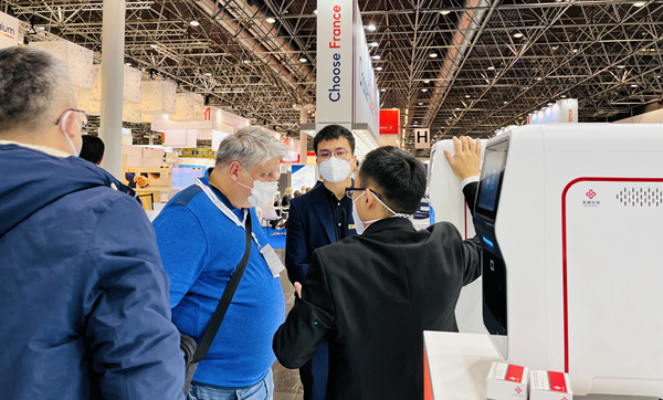巴西一位合作多年的客户特意来到金年会jinnianhui展台,沟通四通道iPonatic合作事宜。在听取工作人员的详细介绍并观看操作后,他表示,“你们的POCT可搭载的项目很多,正是我们所需要的,我们非常感兴趣。”